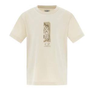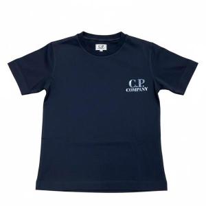 CP Company blauw T-shirt met print op linker borst en loopt door op de rug, pasvorm is regulair.