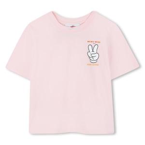 Marc Jacobs roze sweater jurk met all over mickey mouse strip print. Print op de borst en capuchon, lengte boven de knie.