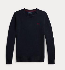 Ralph navy blauwe gebreide kabel trui, gemaakt van 100% katoen. (S=128, M=140-152, L=164-176 en XL=188.)